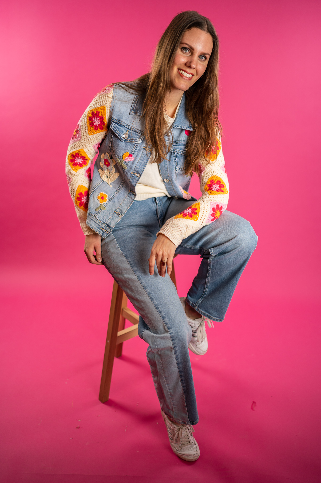 zomer-jeans-kleine-borduurtjes-kort-model-met-bloemborduurtjes-allover-rafels-light-stone-denim-muts-fashion-groningen
