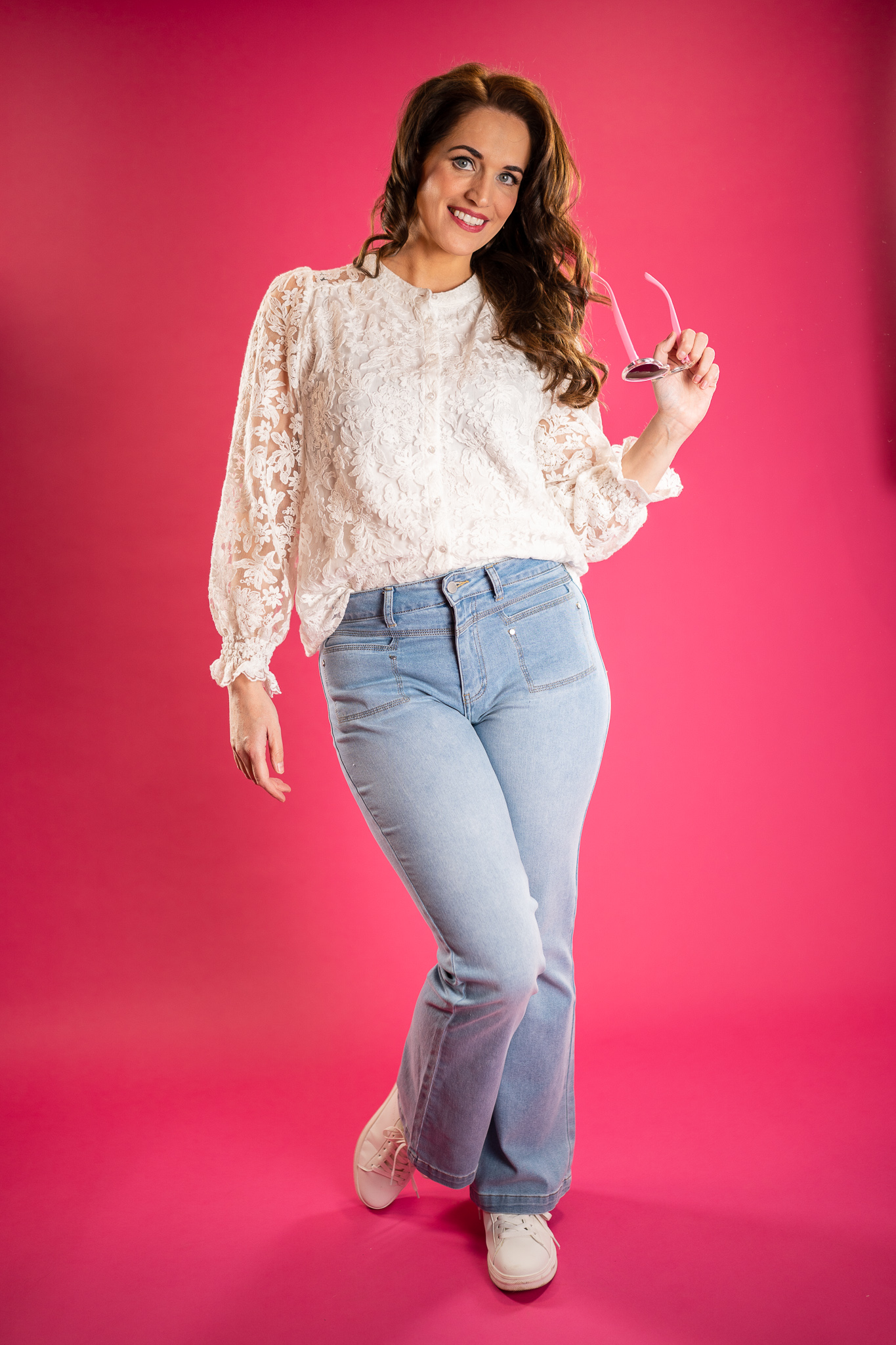 65% katoen 35% polyester, doorknoop model, achter transparant, voorzijde gevoerd, mooie pofmouwtje, erg leuke blouse!
